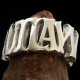 Excellent crafted Men's One Word Outlaw Biker Ring - Sterling Silver