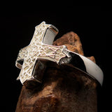 Excellent crafted Men's ornamental Celtic Cross Ring - mirror Polished Sterling Silver