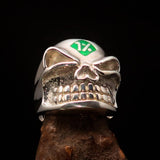 Excellent Crafted Men's Outlaw green 1% er Gnome Skull Ring - Sterling Silver