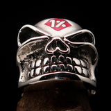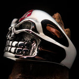 Solid Sterling Silver Men's one Percenter Gnome Skull Ring. high polished with red Enamel.. The Ring is hallmarked 925