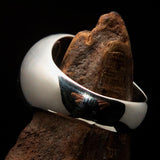 Solid Sterling Silver Men's Symbol Ring Black Pentagram high polished with Enamel. The Ring is hallmarked 925 and has a solid Back.