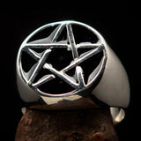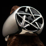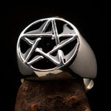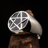 Excellent crafted Men's Pinky Ring Black Pentagram - Sterling Silver