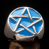 Excellent crafted Men's Pinky Ring Blue Pentagram - Sterling Silver