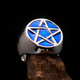 Excellent crafted Men's Pinky Ring dark blue Pentagram - Sterling Silver