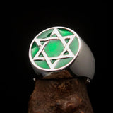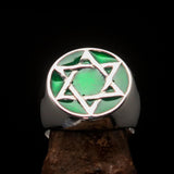 Excellent crafted Men's Pinky Ring Green Star of David - Sterling Silver