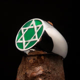 Solid Sterling Silver Men's Symbol Ring green Star of David high polished with Enamel. The Ring is hallmarked 925 and has a solid Back.