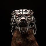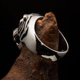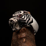 Excellent crafted Men's Predator Ring Tiger red CZ Eyes and black Stripes - Sterling Silver