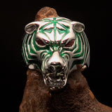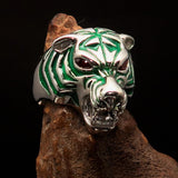 Excellent crafted Men's Predator Ring Tiger red CZ Eyes and green Stripes - Sterling Silver