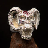 Excellent crafted Men's red 1% Ram Skull Outlaw Ring - Sterling Silver