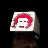 Solid Sterling Silver Men's red Man with Beard Ring high polished with Enamel. The Ring is hallmarked 925.