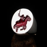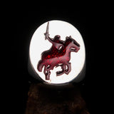 Excellent crafted Men's Red Riding Knight Ring - Sterling Silver