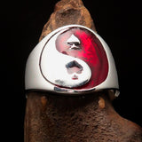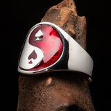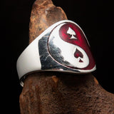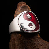Excellent crafted Men's red Spades Yin Yang Poker Ring - Sterling Silver
