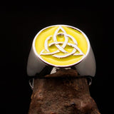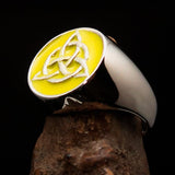 Solid Sterling Silver Men's yellow Celtic Knot Ring Triskelion. High polished with Enamel. The Ring is hallmarked 925.