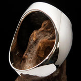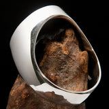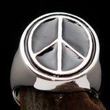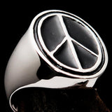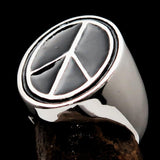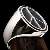 Oval Men's Ring black Peace Symbol Flower Power - Sterling Silver