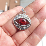 Oval shaped Sterling Silver Eye Pendant with round red CZ - Minimalist Design