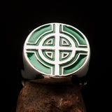 Perfectly crafted Men's Biker Ring Celtic Cross Green - Sterling Silver