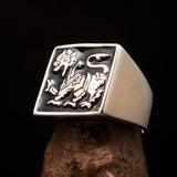 Perfectly crafted Men's black Sinhalese Lion Ring - Sterling Silver