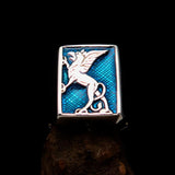 Perfectly crafted Men's Blue Griffin Ring Griffon - Sterling Silver