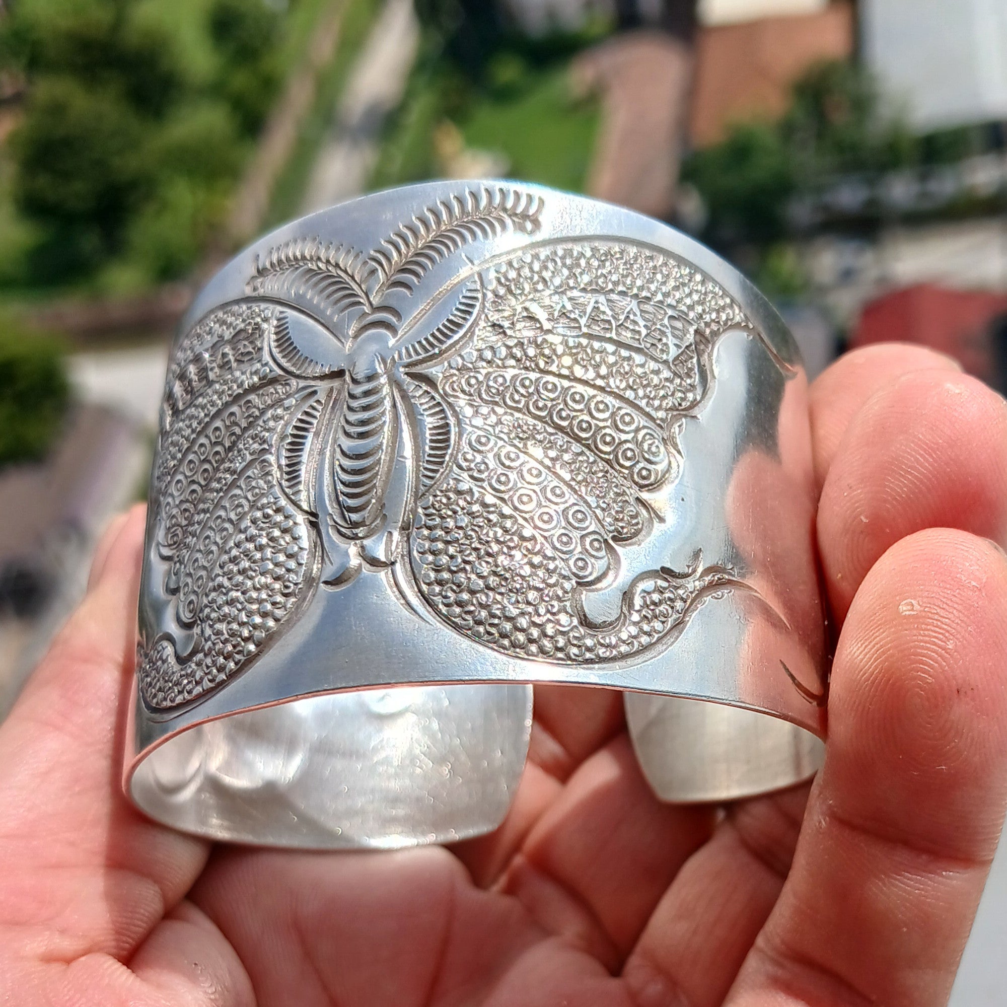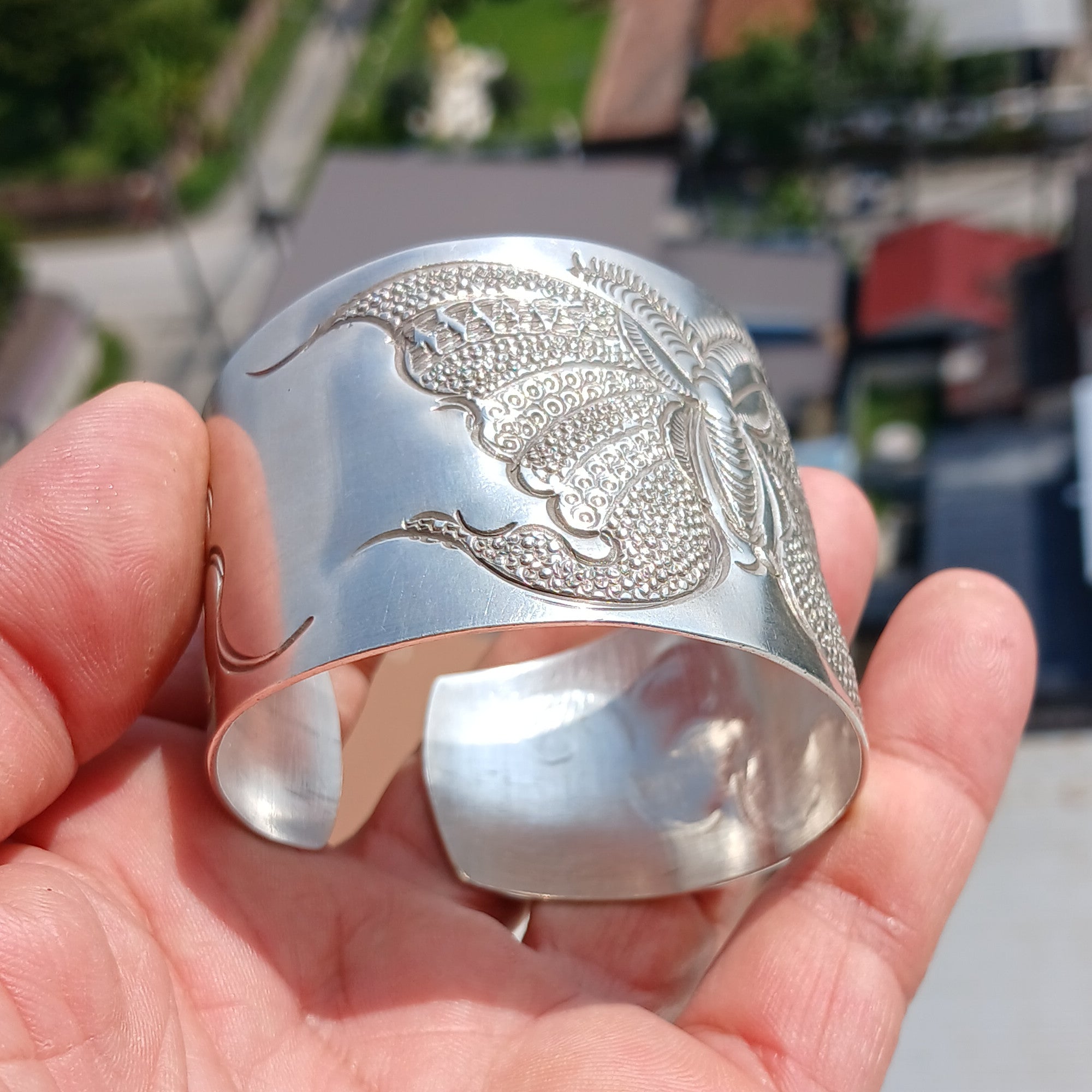 Butterfly Silver Bracelet, Minimalist Sterling Silver Bracelet, Extra wide Bracelet, Hand Crafted Sterling Silver Bracelet / Bangle