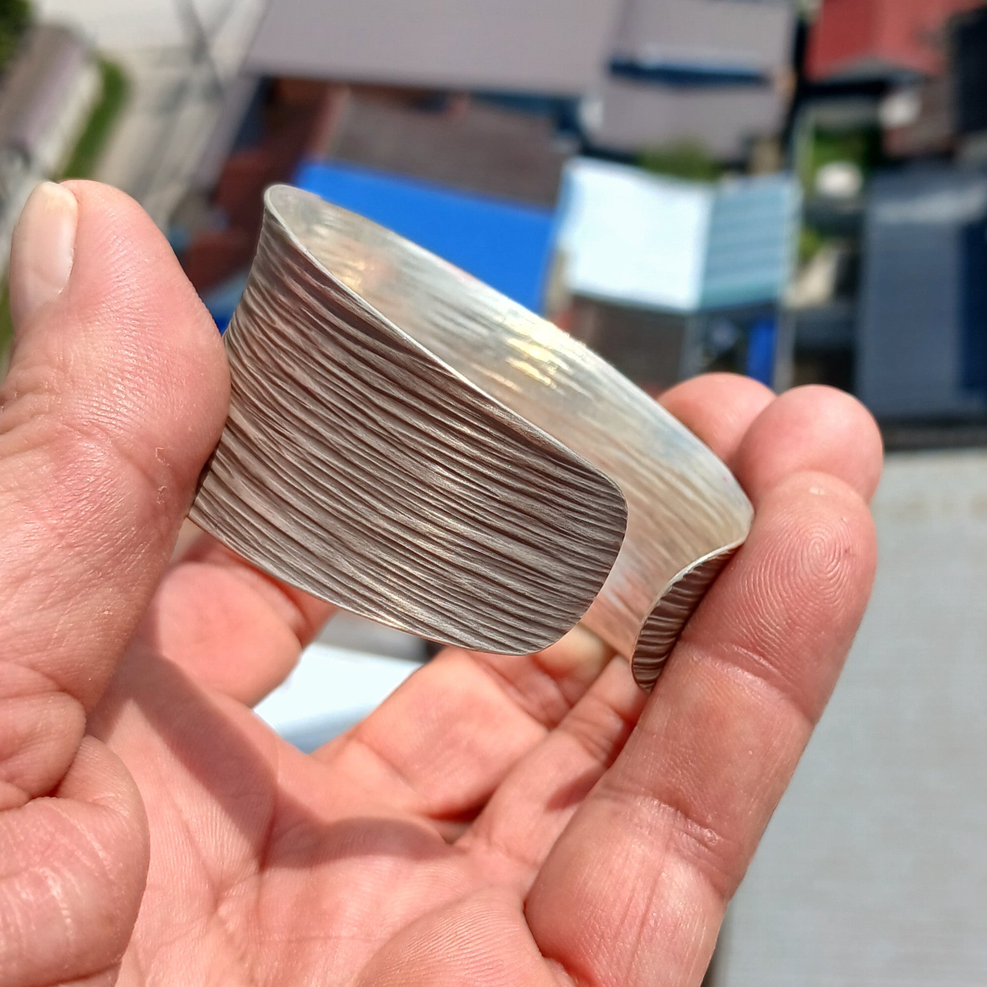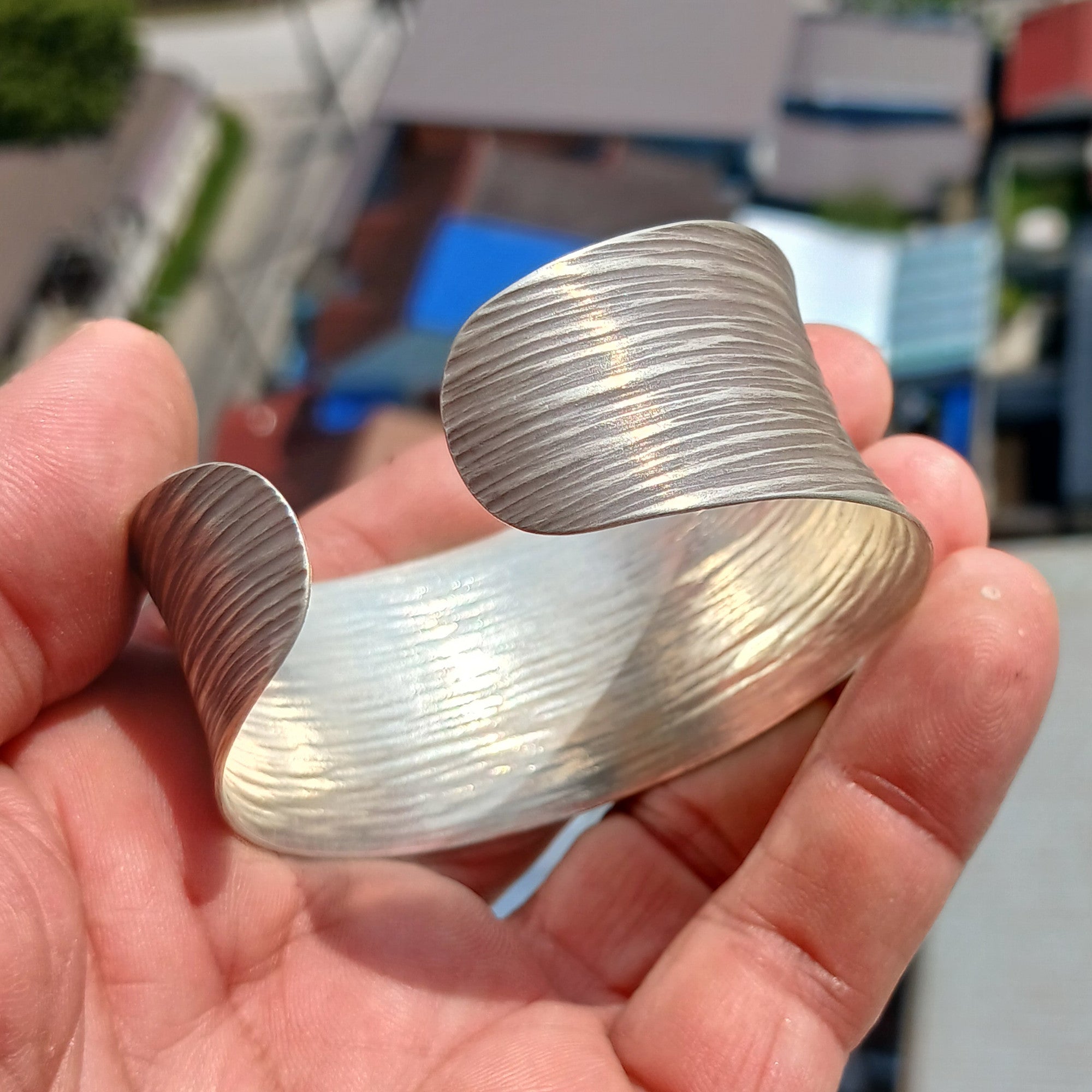 Minimalist Bracelet, Engraved Sterling Silver Bracelet, Extra wide Bracelet, Hand Crafted Sterling Silver Bracelet / Bangle