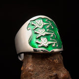 Hervorragend gearbeiteter grüner Wappenring für Herren mit 3 Löwen - Sterlingsilber