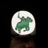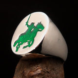 Hervorragend gearbeiteter grüner Ritterring für Herren - Sterling Silber