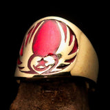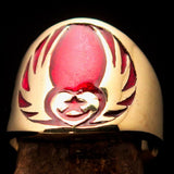 Claddagh-Ring aus massivem Messing für Herren mit rotem geflügeltem Herz, hochglanzpoliert mit Emaille.