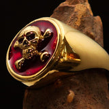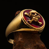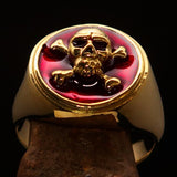 Piratenring Jolly Roger aus massivem Messing für Herren, hochglanzpoliert mit rotem Emaille.