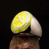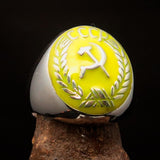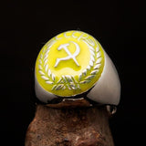 Anillo comunista para hombre perfectamente elaborado con cresta de hoz y martillo amarillo CCCP - Plata de ley